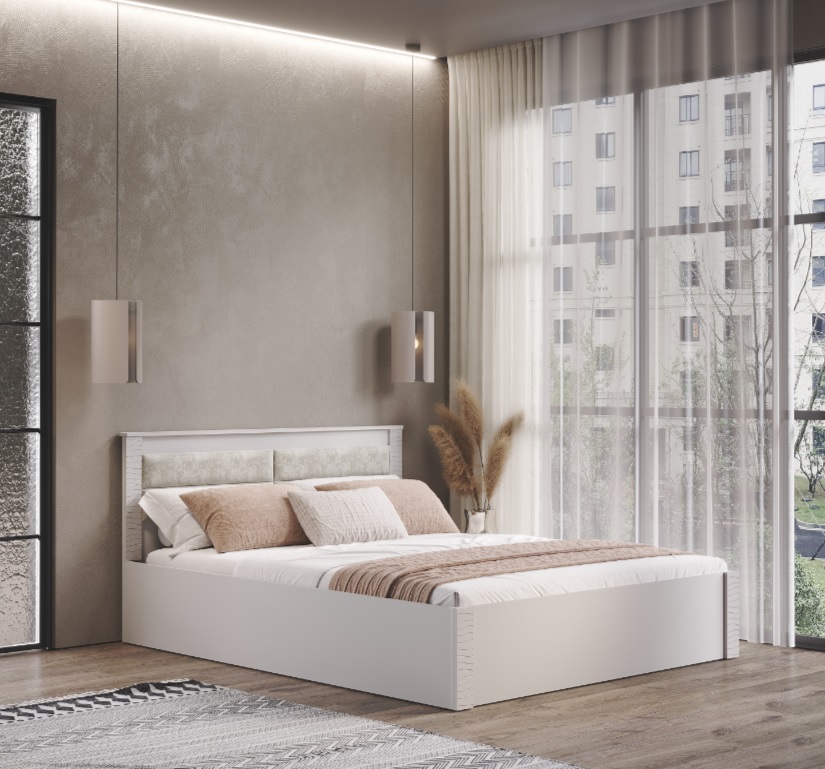 Кровать "Монако" КР-16 1,6 м отличается оригинальным дизайном: мягкая спинка встроена в головной щиток. Фасад украшен декоративными элементами из МДФ.