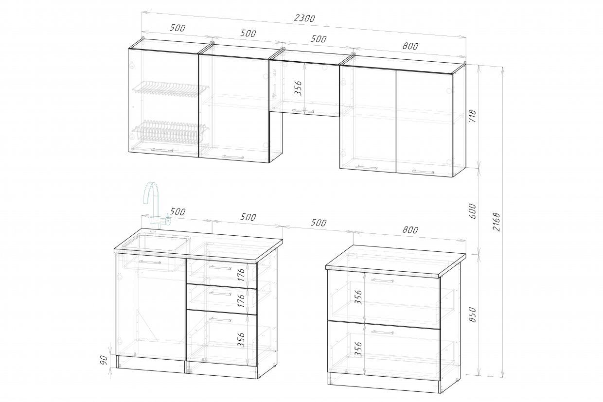 Ширина: 2300 мм; Глубина: 600 мм (со столешницей)
