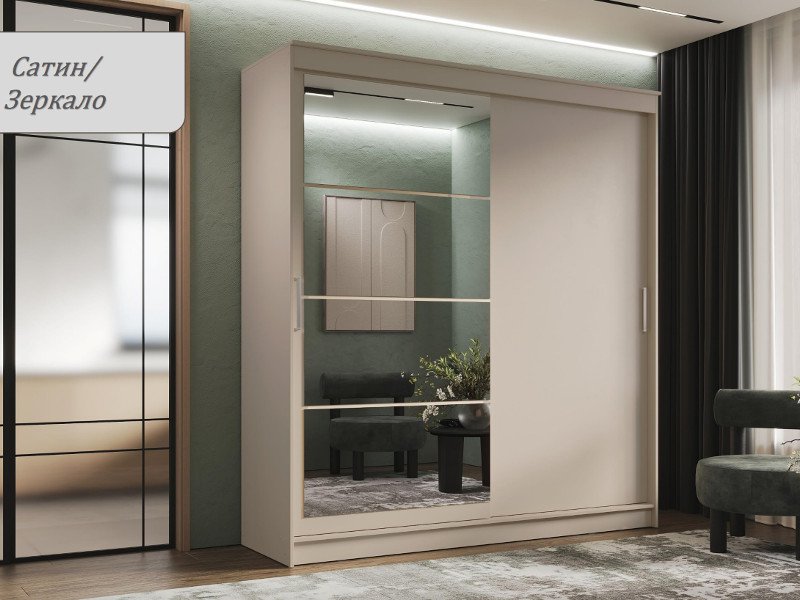 Шкаф-купе 2000 мм Гранд-1 ЛДСП/Зеркало, Сатин (Эра)