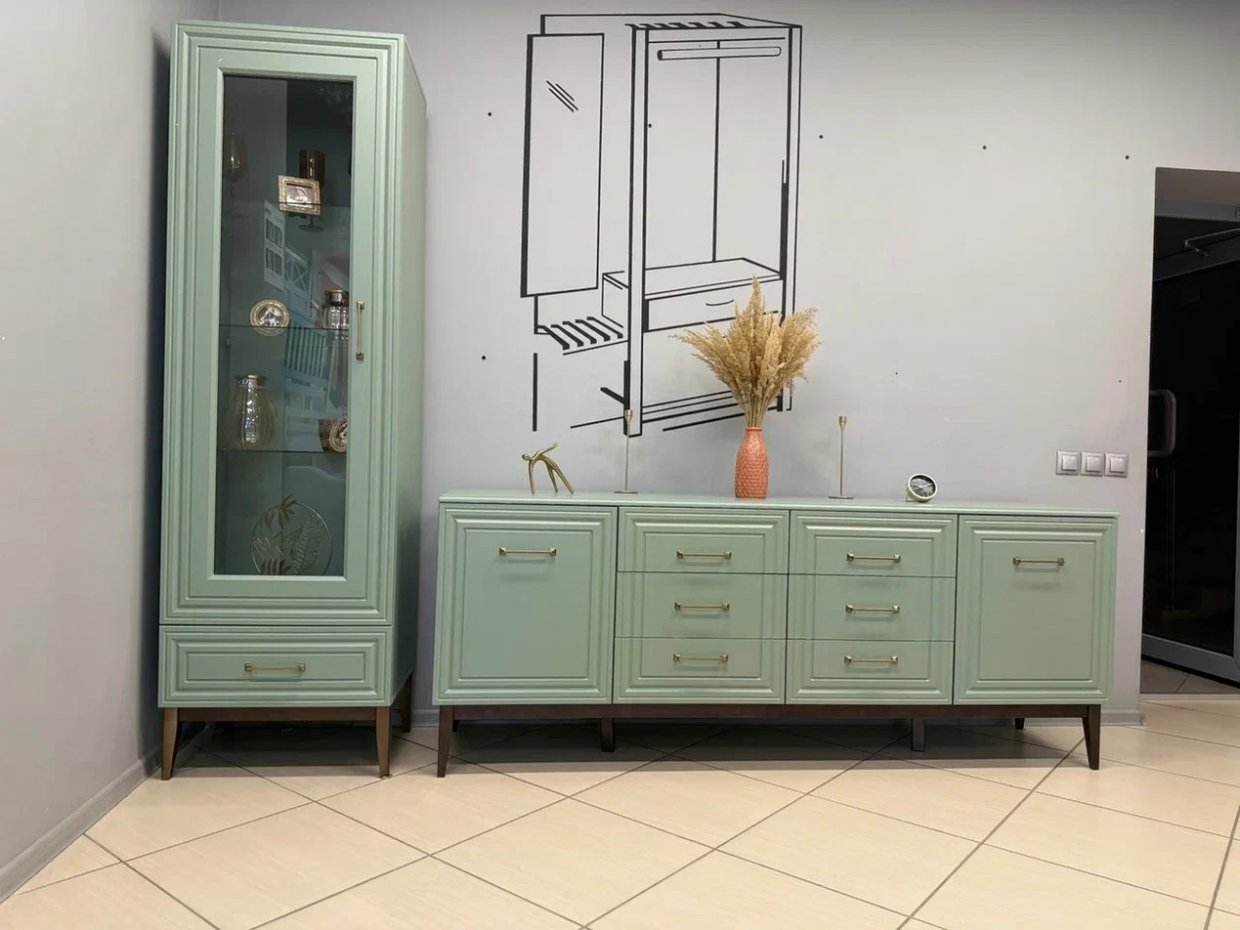 | Комод 6 ящиков, 2 двери Гориция зеленый самшит (БМ) |